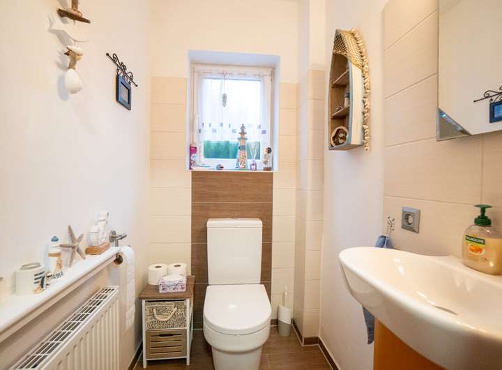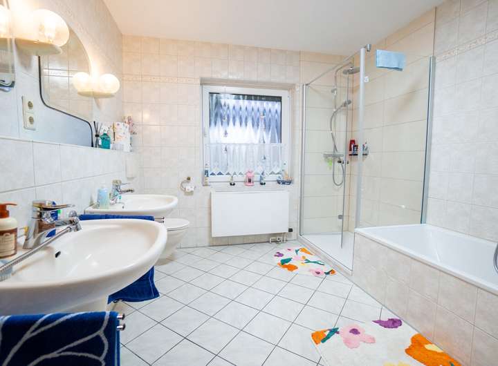- Badezimmer im Obergeschoss mit Badewanne