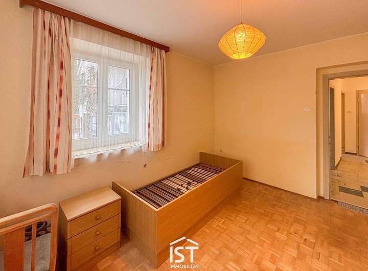 Über eine großzügige Treppe gelangt man in das Obergeschoss, wo zwei weitere Zimmer zur Verfügung stehen. Ein großer Abstellraum sorgt auch auf dieser Ebene für ausreichend Stauraum. Ergänzt wird das Raumangebot durch einen Balkon.