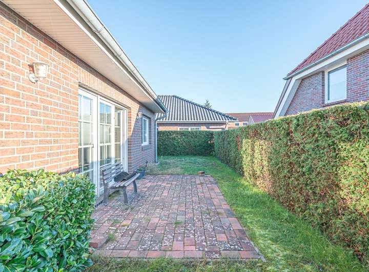 Das Objekt befindet sich auf einem 240 m² großen Hintergrundstück in zentraler und ruhiger Lage von Bockhorn. Der vom Wohnzimmer direkt begehbare Terrassenbereich ist optimal Richtung Süden ausgerichtet. Ein KFZ-Stellplatz befindet sich im vorderen Bereich, an der Straße und ein gepflasterter Fußweg ermöglicht den entspannten Zugang zum Haus.