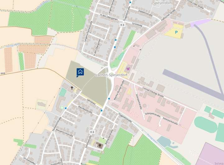 Das Neubaugebiet verbindet die beiden vorhandenen Ortsteile und wird somit zur neuen Ortsmitte von Lachen-Speyerdorf.