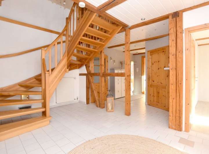 Charaktervolle Sichtbalken und Fachwerkelemente verleihen dem Haus eine gemütliche Atmosphäre und verbinden traditionellen Charme mit modernem Wohnkomfort. Der große Garten mit Terrasse lädt zum Entspannen, Gärtnern oder geselligen Beisammensein im Freien ein. Abgerundet wird das Angebot durch eine Doppelgarage, eine großzügige Gerätehalle sowie einen Teilkeller, der zusätzlichen Stauraum bietet. Ob als Einfamilienhaus mit viel Platz oder als Zweifamilienhaus mit getrennten Bereichen – diese Immobilie bietet Ihnen viele Möglichkeiten, Ihre Wohnideen zu verwirklichen. Gerne zeigen wir Ihnen das Objekt bei einer Besichtigung.
