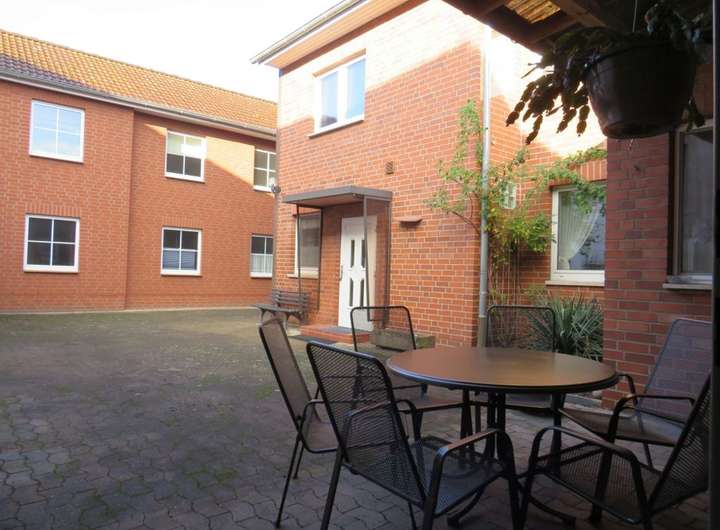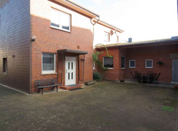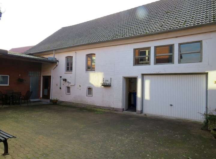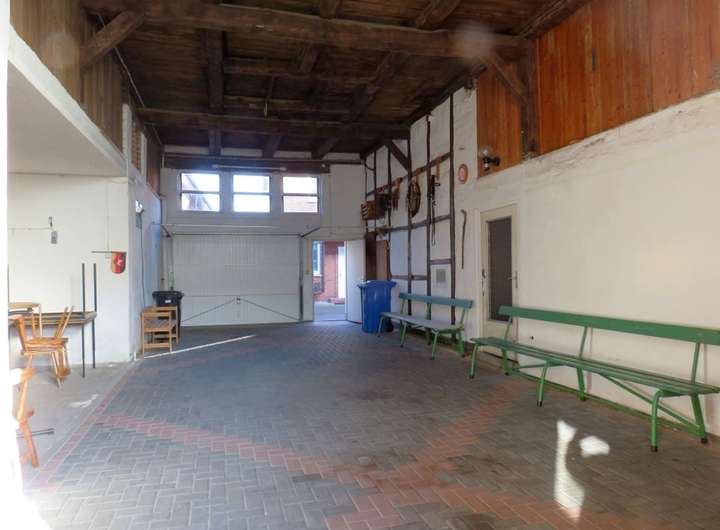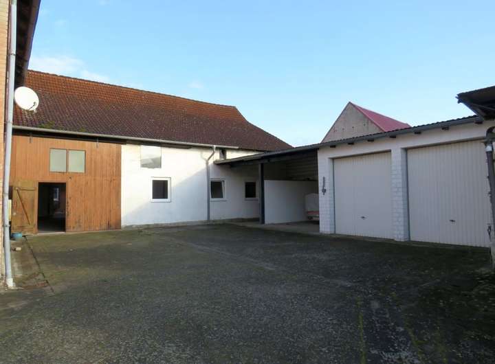 Der Innenhof bildet das verbindende Element zwischen dem Haupthaus und den Nebengebäuden. Hier lädt ein teilüberdachter Außensitzbereich zum Erholen und Verweilen ein. Vom Innenhof aus gelangt man zu den Wirtschaftsräumen und es gibt eine Durchfahrt in den dahinter liegenden Hofbereich. Dort befinden sich zwei Unterstände, zwei Garagen und KFZ-Außenstellplätze. Darüber hinaus ist ein weiteres Nebengebäude mit Partyraum und Außensitzbereich vorhanden. Hier schließt eine Lagerhalle an. Das hinter Grundstück verfügt über eine separate Zufahrt. Diese komplettiert die Außenanlagen und eröffnet vielfältige Nutzungsmöglichkeiten – von privater Freizeitgestaltung bis hin zu gewerblichen Optionen.