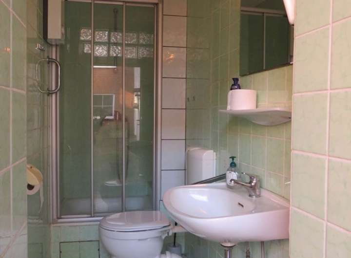Gäste-Bad Innenhof: Dusche, WC, Waschbecken, Fenster