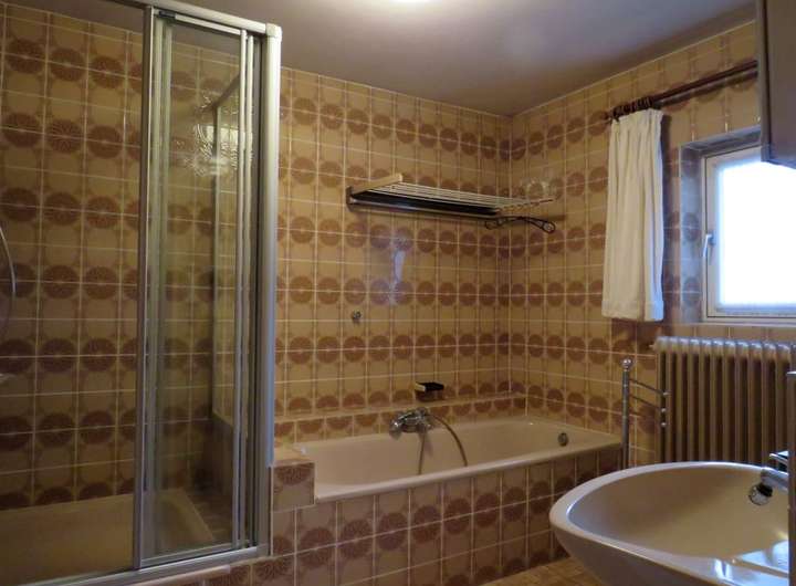 Bad EG und OG: WC, Waschbecken, Badewanne, Dusche und Fenster
