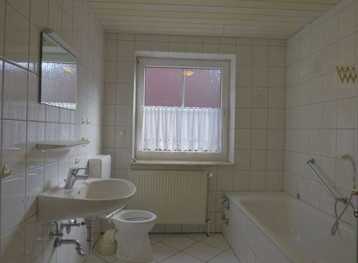 Bad EG: Badewanne, Dusche, Waschbecken, Fenster