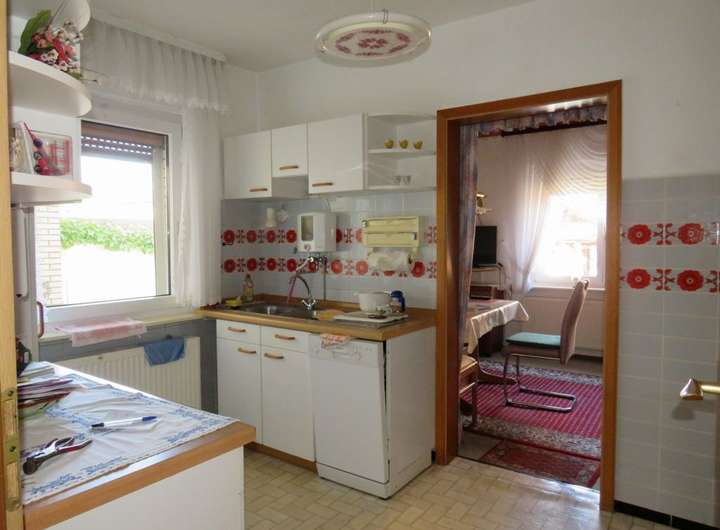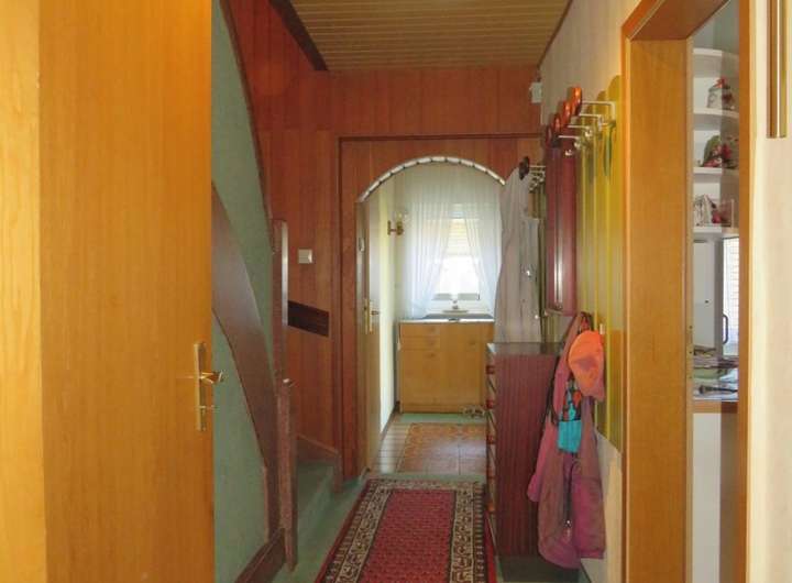 Bei der DHH handelt es sich um den Typ „Siedlungshäuschen“ aus den 60er Jahren mit großzügigem Hof, Garagen und einem großen Garten zur Eigenversorgung.