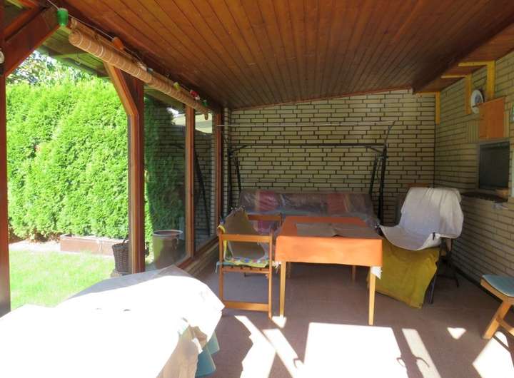 Außensitzbereiche: Wintergarten und überdachter Sitzbereich im Garten, Balkon im OG