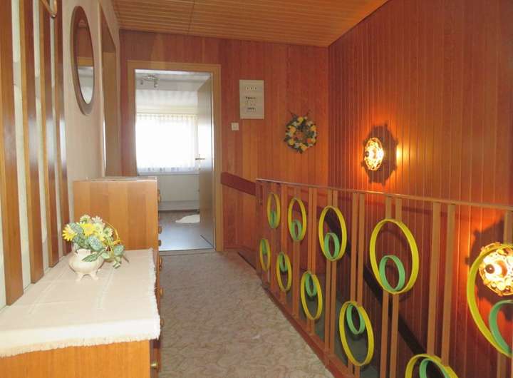 Im Obergeschoss befinden sich je zwei Schlafräume mit angebundenem Durchgangsraum, ideal für eine Familie mit zwei bis 4 Kindern. Darüber hinaus ist auf der Etage noch ein Badezimmer mit Dusche vorhanden. In einem der Zimmer befinden sich Anschlüsse für eine Küchennutzung.