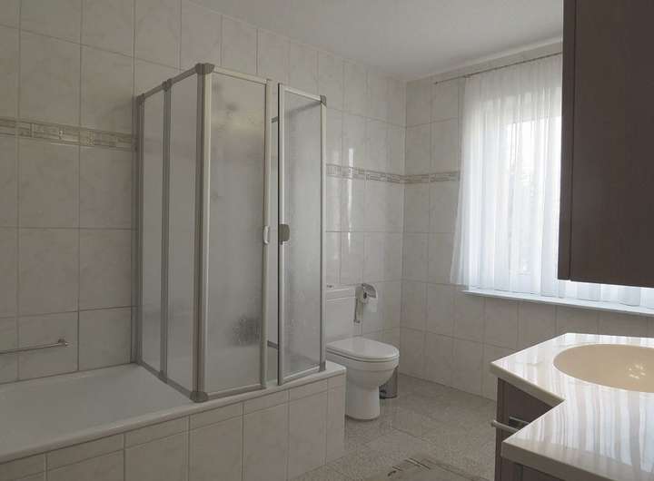 Bad im EG: Waschtisch, Badewanne, Dusche, WC, Fenster