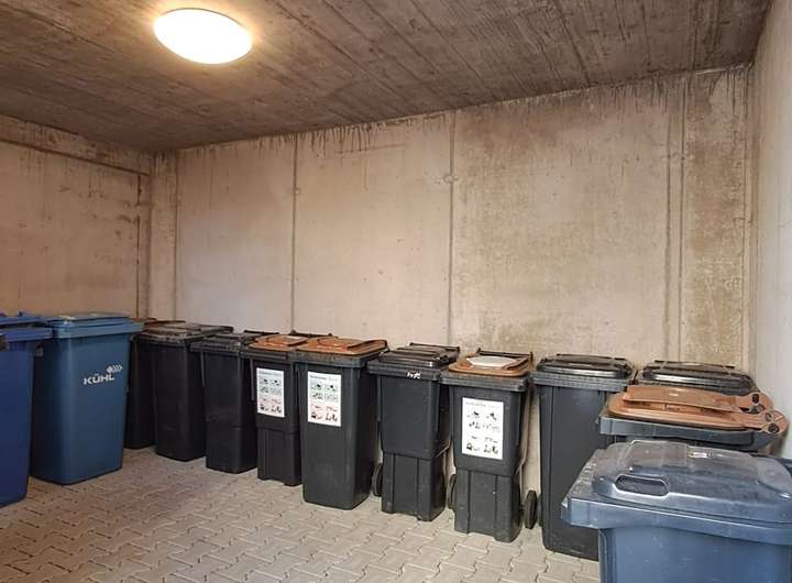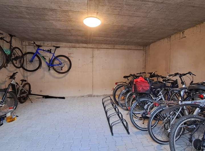 Zur gemeinschaftlichen Nutzung stehen ein abgeschlossener Fahrradraum, ein Raum für Müllbehälter und ein Wasch-/Trockenraum mit Anschluss für die Waschmaschine zur Verfügung.