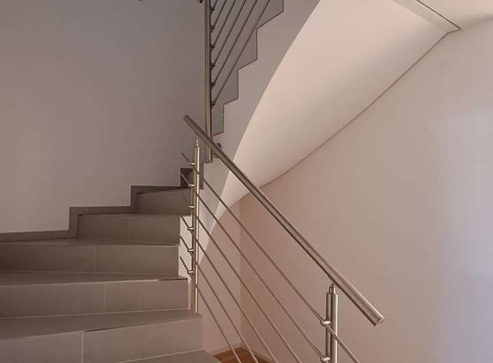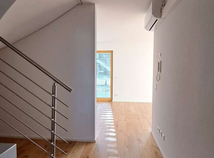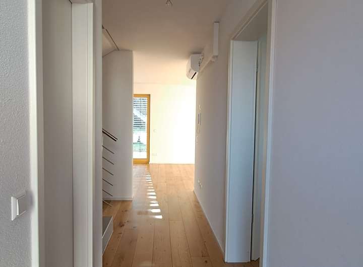 Das gesamte Reihenhaus ist mit Fußbodenheizung, Glasfaseranschluss und Klimaanlage ausgestattet. Die Böden bestehen aus Echtholzparkett und Fliesen. Zur Wohnung gehört ein großes Dachbodenabteil im Nebengebäude.
