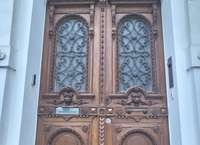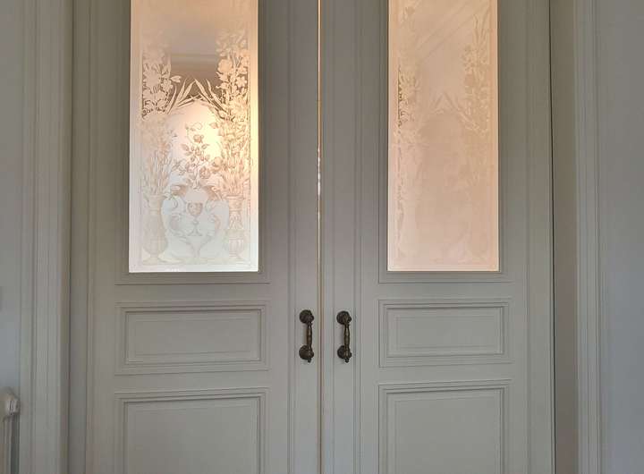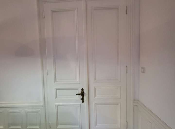 Türen: Holz u. Glas- Kassettentüren hell gestrichen