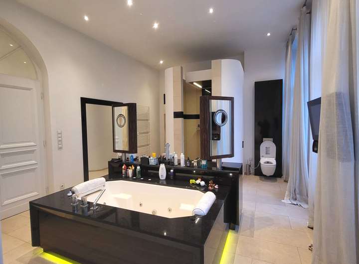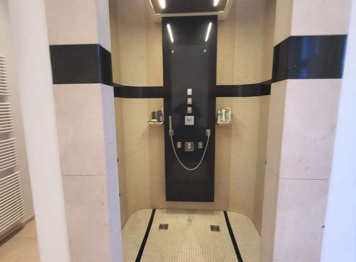 - Urinal, Waschtische, Spiegel, XXL-Badewanne u. Dusche, sämtliche Einrichtungen sind Einzelanfertigungen