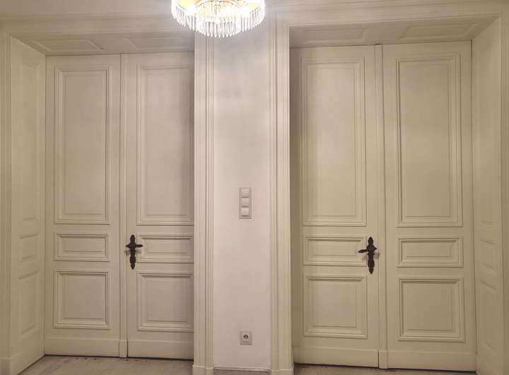 Alle Räume verfügen über, dem Baujahr entsprechend hohe Decken (EG=4.32m/ OG=4.13m), die Untersichten ebenfalls stuckverziert.