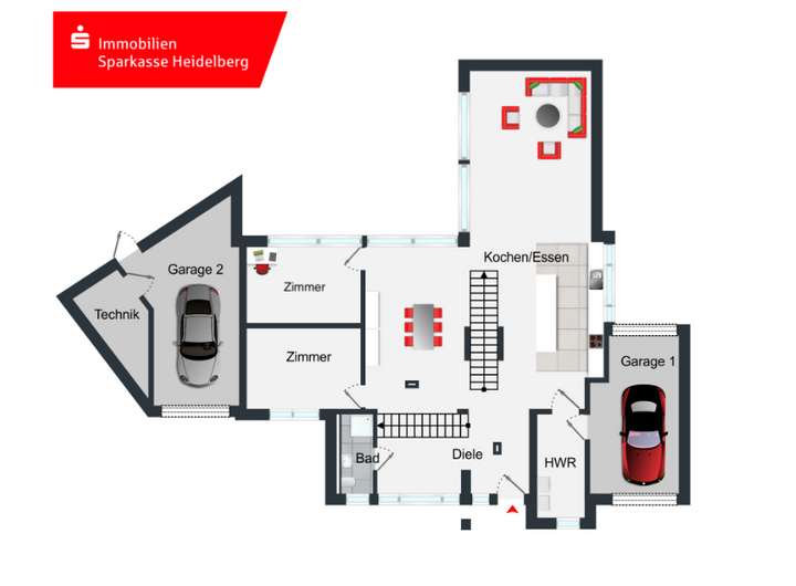 • großer, lichtdurchfluteter Wohn- und Essbereich mit offenem Grundriss