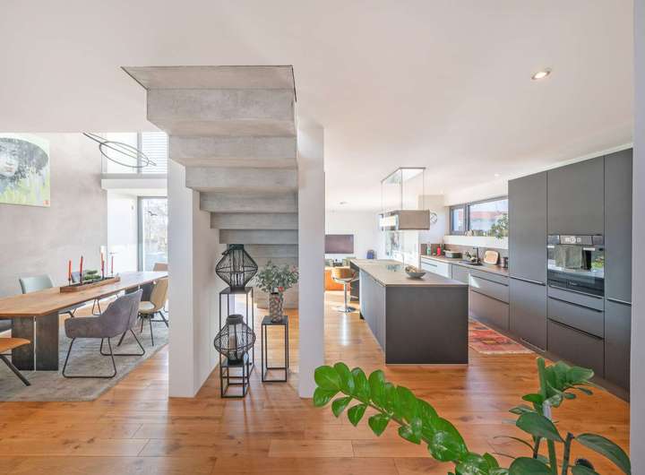 Dieses freistehende, neuwertige Einfamilienhaus wurde im Jahr 2019 erbaut (Massivbauweise) und besticht durch seine hochwertige, luxuriöse und moderne Ausstattung. Mit einer Wohnfläche von ca. 198 m², einem großzügigen Grundstück von ca. 551 m² sowie insgesamt acht Zimmern (zzgl. großem Hobbyraum sowie einem Zimmer in Wohnraumqualität im Untergeschoss) bietet es außergewöhnlich viel Platz für Familien, Paare oder anspruchsvolle Käufer, die Wert auf Qualität und Komfort legen.