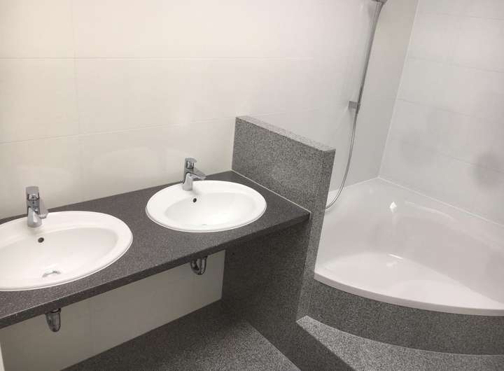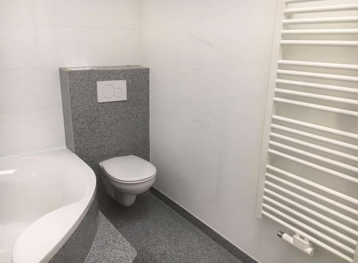 Die Küche, das Bad und das Gäste-WC sind mit Granit gefliest