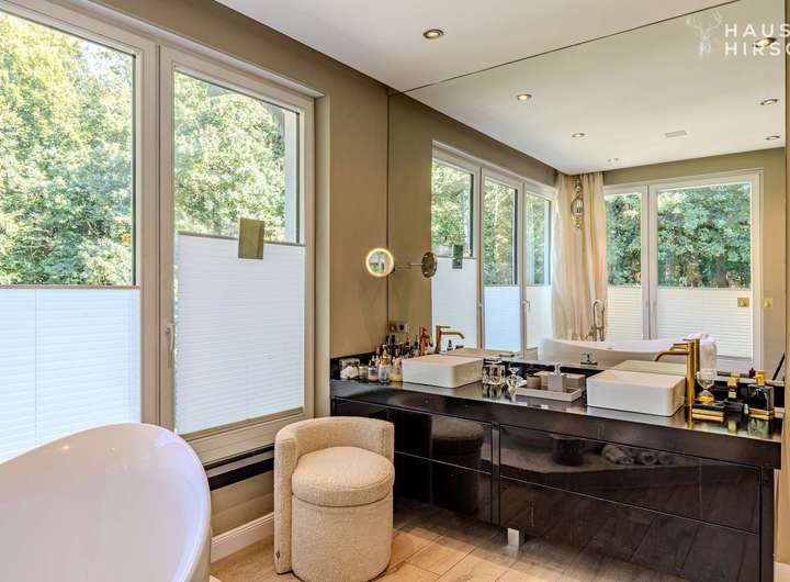Auf 577 m² Wohnfläche entfaltet sich ein Wohntraum mit 8 weitläufigen Zimmern, der Ihrer Familie unendlich viel Raum zur persönlichen Entfaltung bietet. Ob geselliges Beisammensein im repräsentativen Wohnbereich am knisternden Kaminfeuer oder ruhige Momente in einem der fünf privaten Schlafgemächer – hier findet jeder seinen Lieblingsplatz. Vier stilvoll gestaltete Luxusbadezimmer und eine private Sauna sowie ein Dampfbad verwandeln den Alltag in eine Wellness-Auszeit, während zwei hochmoderne Küchen das Kochen zum Erlebnis und zum Treffpunkt für die ganze Familie machen. Es besteht die Möglichkeit, einen Indoor-Pool zu installieren.