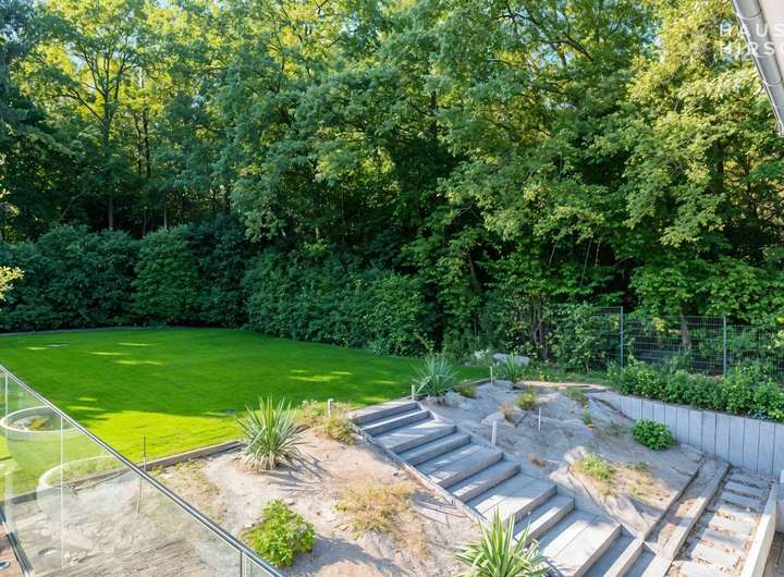 Ein besonderes Highlight ist die durchdachte Architektur mit zwei separaten Hauseingängen, die eine perfekte Trennung in zwei eigenständige Einheiten ermöglicht – ideal für ein Mehrgenerationenwohnen, ein Au-pair oder die ungestörte Integration von Homeoffice und privatem Leben. Der luxuriöse Lebensraum setzt sich im Freien nahtlos fort: Erleben Sie unvergessliche Momente auf den vier Sonnenterrassen, die mit über 212 m² den Wohnraum elegant erweitern, während Ihre Kinder unbeschwert im Garten spielen. Als letztes Haus in der Reihe genießen Sie hier eine absolute und seltene Privatsphäre.