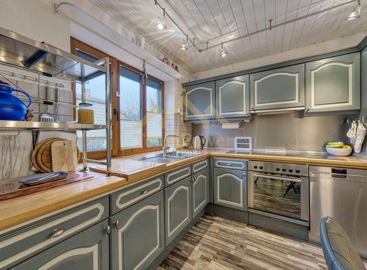 Die Küche ist funktional geschnitten und bietet ausreichend Platz zum Kochen und Verweilen. Ergänzt wird das Erdgeschoss durch ein modernes Gäste-WC sowie einen praktischen Hauswirtschafts- und Eingangsbereich.