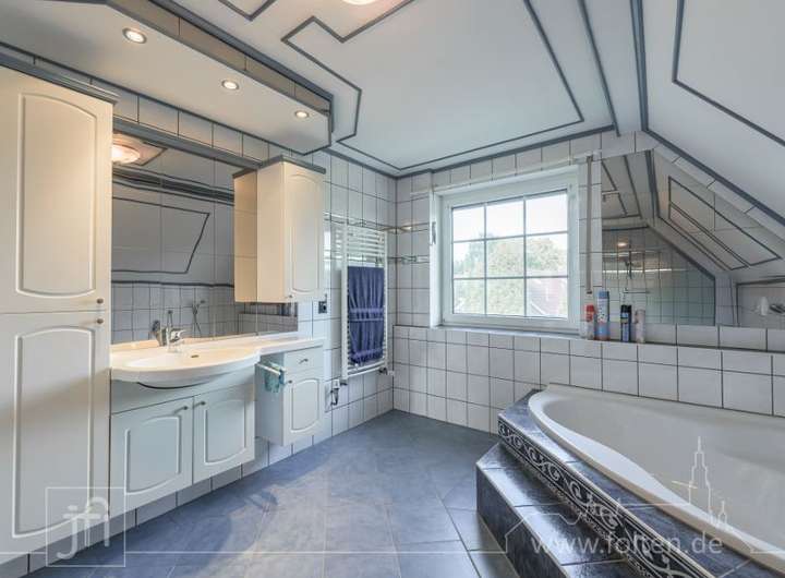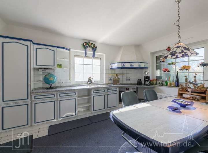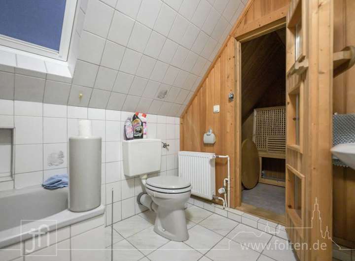 Das Einfamilienhaus wurde im maritimen Stil mit teilweise aufwändigen Deckengestaltungen in friesisch-blau oder Naturholz gestaltet. Auf knapp 130 m² Wohnfläche stehen Ihnen im Erdgeschoss ein sehr großes Wohn- und Esszimmer, eine Wohnküche, eine Eingangsdiele mit Windfang sowie ein Gäste-WC zur Verfügung. Zudem befindet sich hier der Heizungsraum, ein Wirtschaftsraum sowie der hintere Flur, der vor einigen Jahren mit einer ebenerdigen Dusche und einem Waschtisch ausgestattet worden ist. Mit wenig Umbauaufwand ließen sich Wohn- und Essbereich in zwei Räume trennen, sodass ebenerdiges Wohnen möglich wäre. Über die Massivholz-Treppe gelangen Sie in das Obergeschoss. Hier befinden sich das Schlafzimmer, zwei weitere Zimmer, ein großes Bad mit Eckbadewanne, Dusche, WC und Waschtisch sowie ein zweites Bad (Badewanne, WC, Waschtisch) mit angrenzender Sauna. Über eine weitere Holztreppe gelangen Sie auf das bis in die Spitze ausgebaute, beheizte und mit einem Parkettboden augestattet Dachgeschoss, das sich als Stauraum oder auch für Ihre Hobbys eignet.