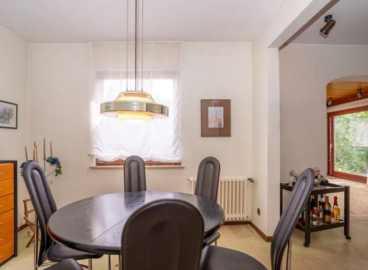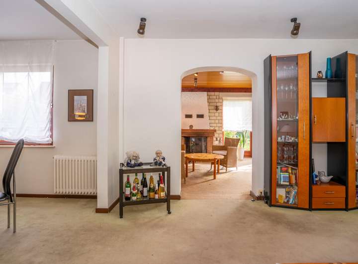 Das Erdgeschoss bietet einen großzügigen Wohn- und Essbereich mit angrenzendem Kaminzimmer. Von hier aus gelangen Sie direkt auf die Terrasse und in den schön eingewachsenen Garten, der durch seine natürliche Begrünung Privatsphäre schafft. Ein Duschbad im Erdgeschoss ergänzt den Wohnkomfort.