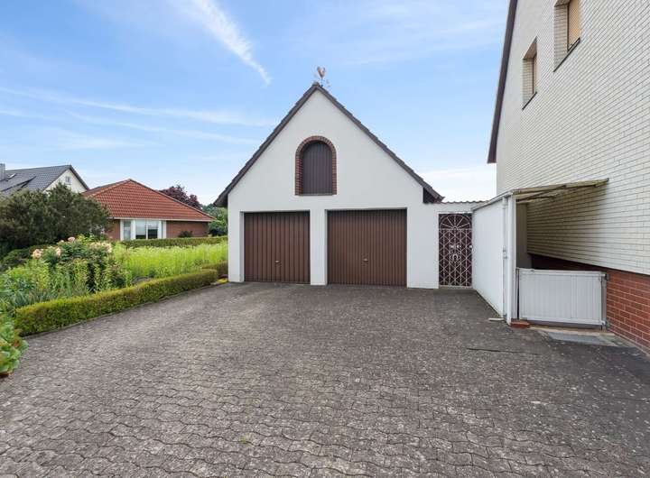 • Doppelgarage, großzügige Einfahrt, gepflegter Garten