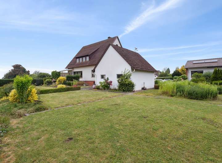 Das ca. 800 m² große Grundstück bietet viel Raum für Kinder, Gartenfreunde und gemeinsame Stunden im Freien – vom Toben bis zum Grillabend. Eine großzügige Einfahrt, eine Doppelgarage sowie ein gepflegter Garten runden das Angebot für Familien ab, die Lebensqualität und Platz schätzen.
