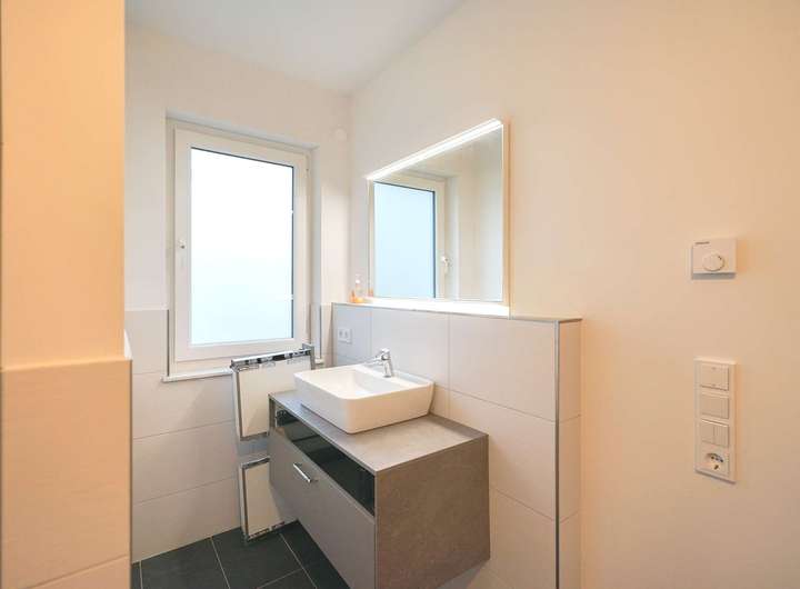 Die Grundrissgestaltung wurde funktional und zugleich offen konzipiert: Helle Wohn-und Schlafräume, große Fensterflächen und eine klare Architektur schaffen ein freundliches, lichtdurchflutetes Ambiente.