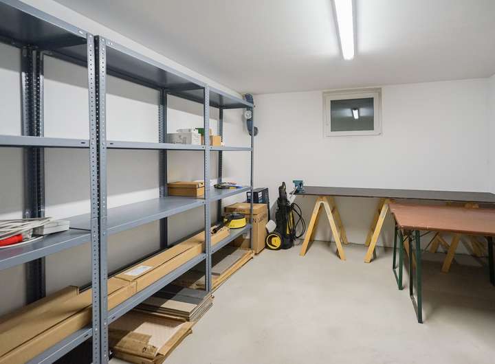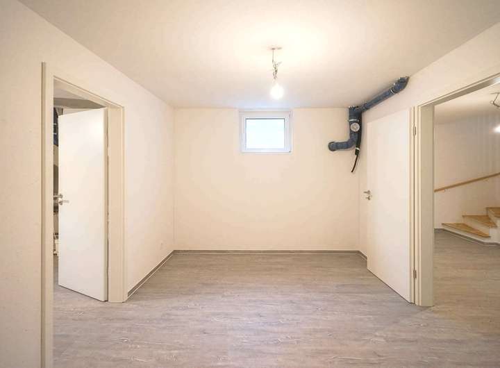 Ein Balkon erweitert den Wohnbereich im Obergeschoss und bietet einen schönen Blick in den Garten. Das zu 75% unterkellerte Haus stellt reichlich zusätzliche Fläche zur Verfügung, ideal als Lagerraum, für einen Hobby-oder Fitnessbereich, eine Werkstatt oder weitere individuelle Nutzungsmöglichkeiten.