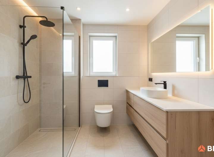 - Praktische Badgestaltung mit ebenerdiger Dusche und Badewanne
