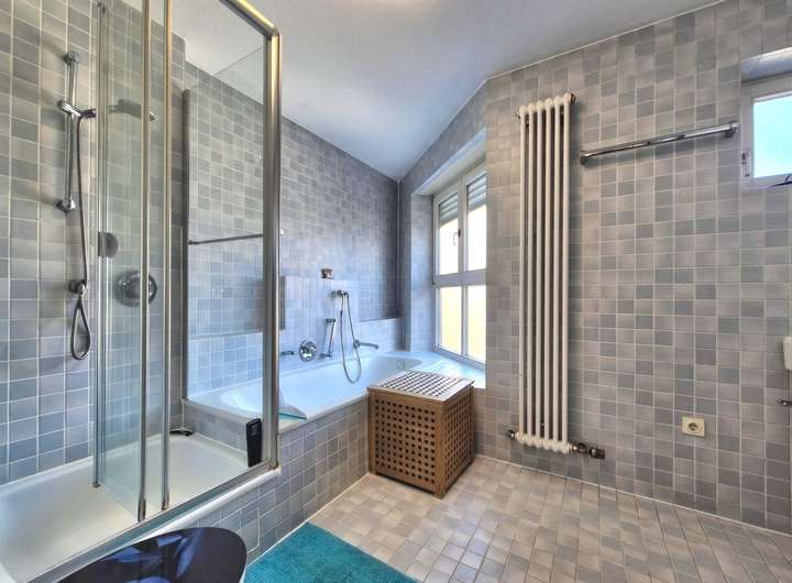 Das Badezimmer im Obergeschoss ist mit einer Badewanne und Dusche ausgestattet, das Badezimmer im Dachgeschoss mit einer Dusche. Beide Bäder entzerren vorprogrammierte Staus am Morgen und Abend.