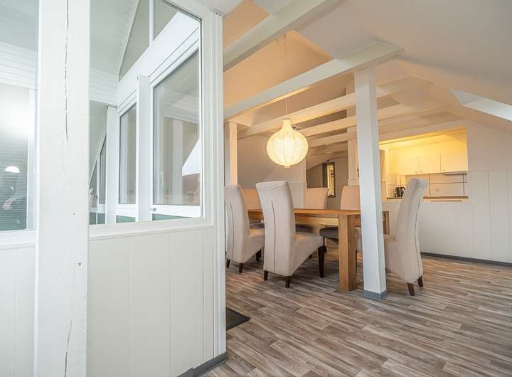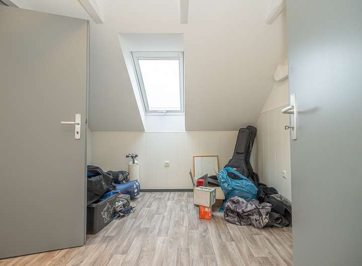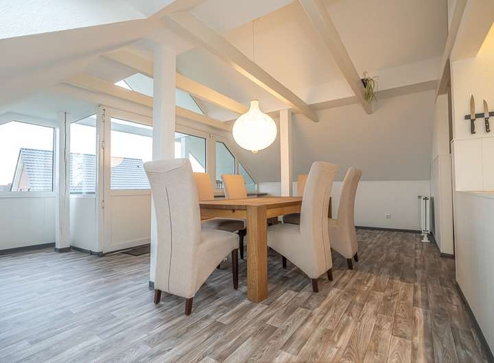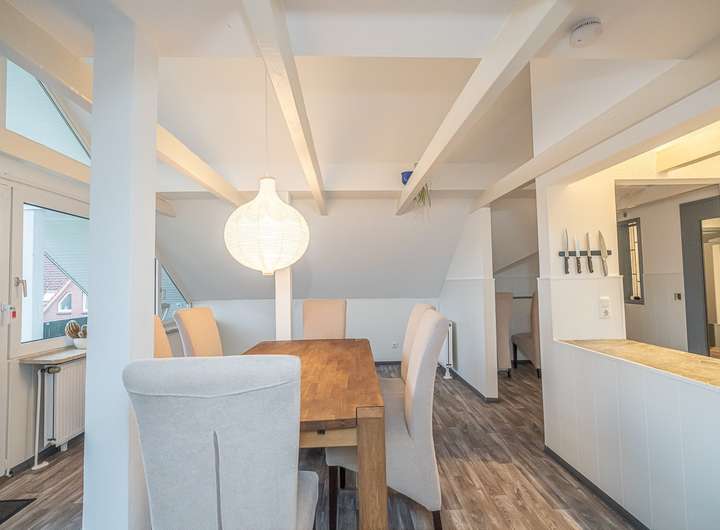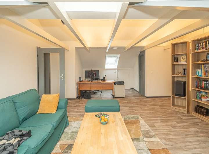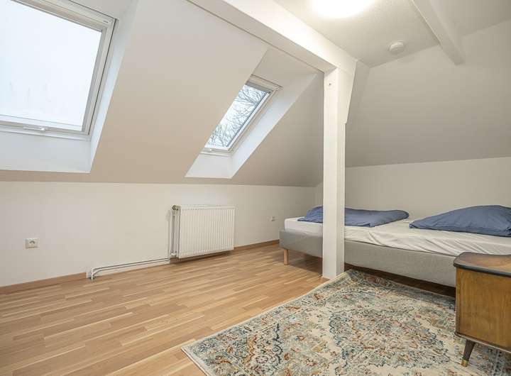 Weiterhin gibt es sogar im oberen Wohnbereich noch zusätzliche Ausbaureserven. Die zweite Wohneinheit im Dachgeschoss ist durch den Umbau vom Flachdach zum Steildach in den 1980er Jahren entstanden. Aus diesem Jahrzehnt ist daher auch die grundsätzliche Dachkonstruktion und die dementsprechende Dämmung.