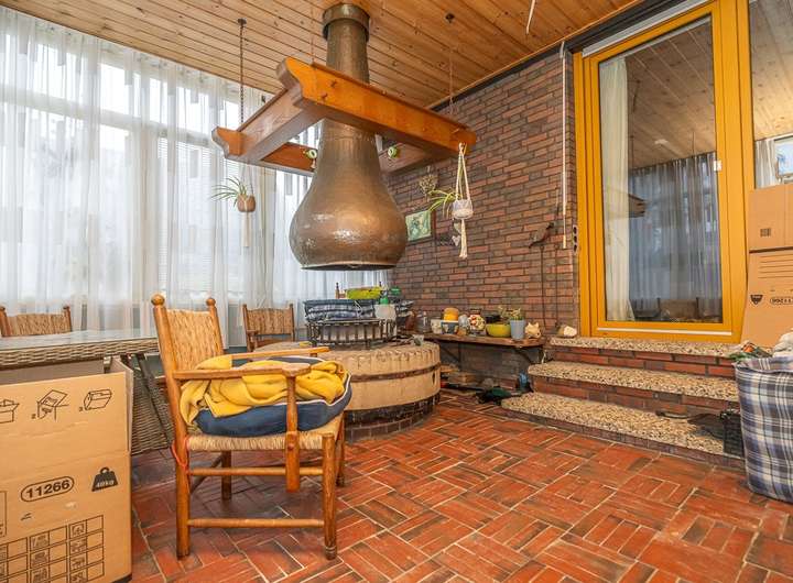 - Wintergarten wurde 1985 mit offenem Kamin errichtet