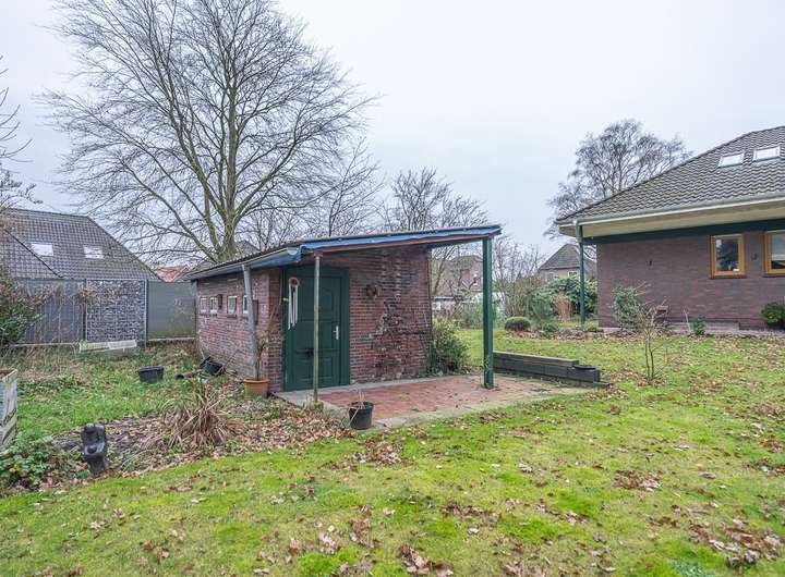 Der Außenbereich wurde kürzlich neu angelegt und wurde klassisch mit heimischen Sträuchern und Gräsern versehen. Ein massives Nebengebäude kann optimal als Freisitz und als Lager genutzt werden. Die zentrale Lage des Wohnhauses ist optimal und ermöglicht sämtliche Erledigungen des täglichen Bedarfes fußläufig zu, dennoch ist es eine sehr ruhige Sackgassenlage.