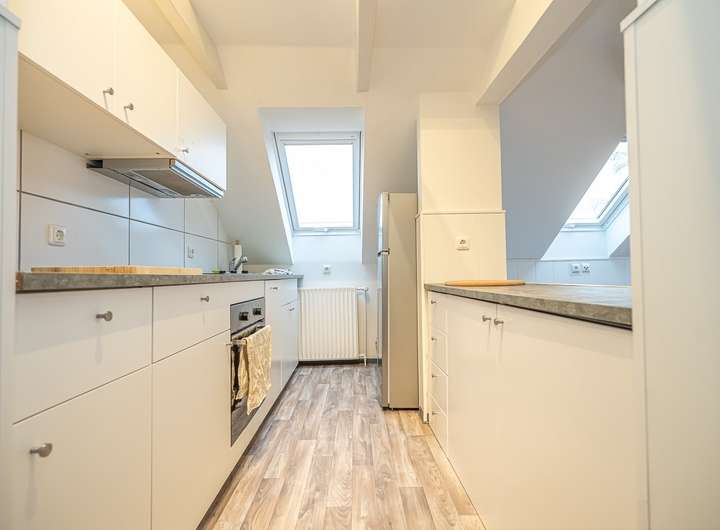 2 Einbauküchen, Bäder mit Tageslicht, vermietete Dachgeschosswohnung