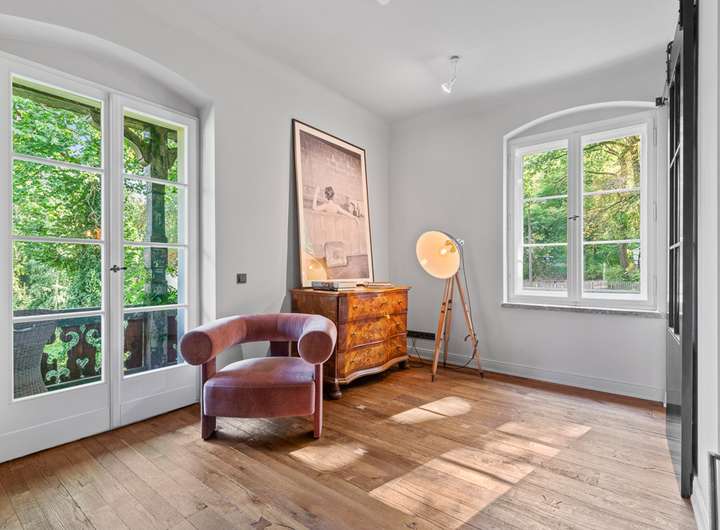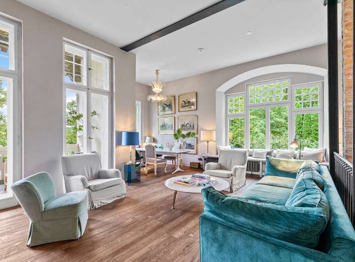 In einer äußerst pittoresken Umgebung und nur wenige Schritte vom Griebnitzsee entfernt, befindet sich diese stilvolle und aufwendig renovierte Villa auf über 2.000qm Grundstück: