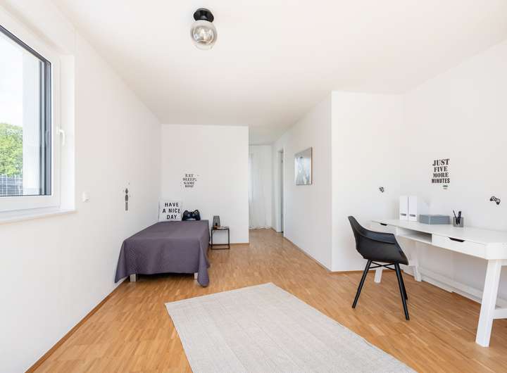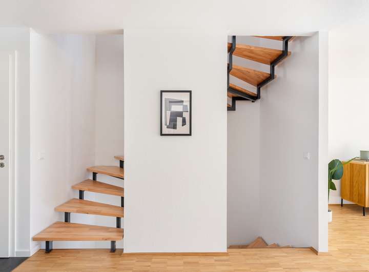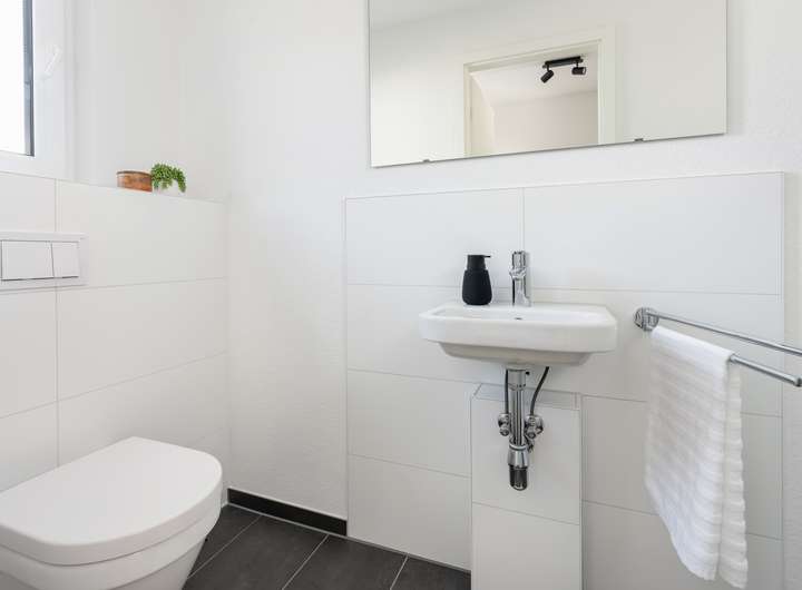 Im Erdgeschoss befinden sich Wohn- und Essbereich mit offener Küche. Bitte beachten Sie: Nur einige Häuser sind mit einer Einbauküche ausgestattet. Diese erhöhen die Kaltmiete jeweils um 70 €. Durch die großzügige Aufteilung entsteht ein fließender Übergang, der viel Platz für das tägliche Familienleben bietet. In den oberen Geschossen stehen mehrere Schlafzimmer und flexibel nutzbare Räume zur Verfügung, die sich gut als Kinderzimmer, Arbeits- oder Rückzugsbereiche einrichten lassen. Die Badezimmer sind modern ausgestattet – unter anderem mit wandhängenden Sanitärelementen, teilweise Doppelwaschtischen sowie großen Spiegeln. Ein separater Kellerraum sorgt für praktische Abläufe im Alltag.
