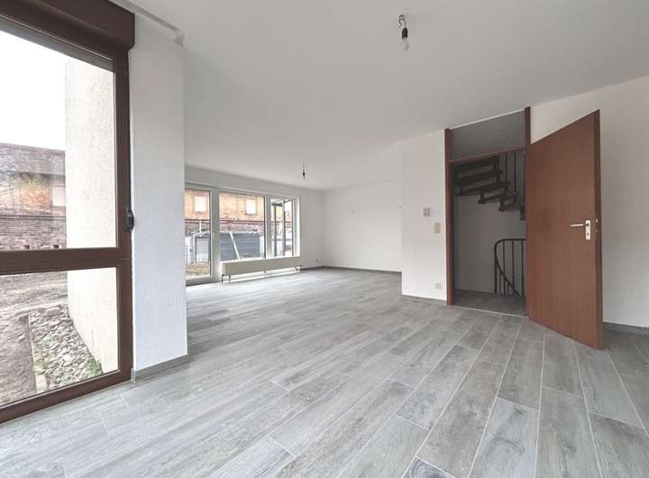 Über den Eingangsbereich mit separierter Gäste-Toilette gelangt man in den großzügigen und offen gehaltenen Wohn-, Ess- und Küchenbereich. Die nach Süden ausgerichtete Terrasse mit anschließendem Garten kann über den Wohnbereich begangen werden und lädt zum Erholen und Entspannen ein.