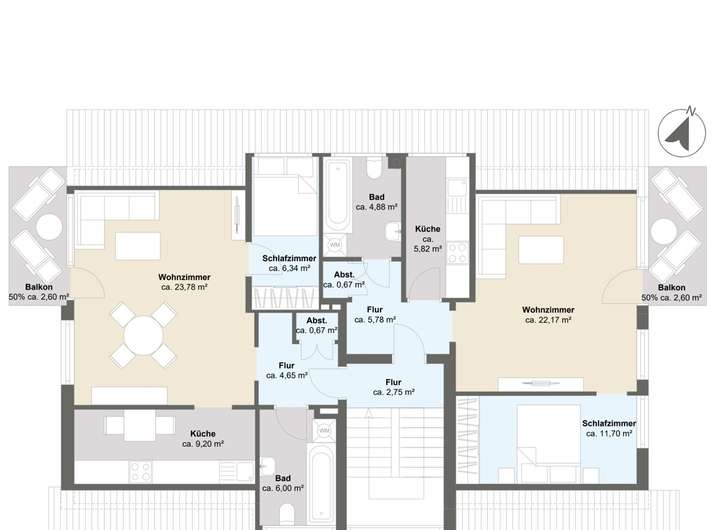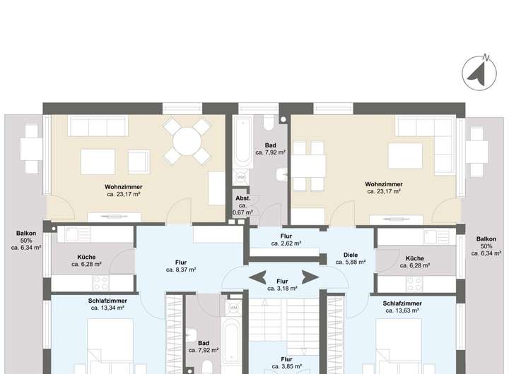 Hervorzuheben ist, dass jede Wohnung über einen großzügigen Balkon verfügt.