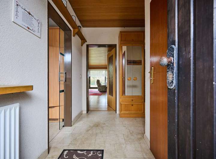 Das Haus ist voll unterkellert. Mehrere Kellerräume, unter anderem ein klassischer Vorrats- bzw. Lagerkeller, bieten viel Platz für Lagerung, Werkstatt oder Hobby. Die Beheizung erfolgt über eine Erdgas-Brennwertanlage aus dem Jahr 2014, die ihre Wärme über Heizkörper in allen Geschossen verteilt. Insgesamt präsentiert sich die Immobilie in einem gepflegten, jedoch überwiegend dem Baujahr entsprechenden Zustand und eignet sich besonders für Käufer, die ein solides Haus nach ihren eigenen Geschmacksvorstellungen modernisieren möchten.