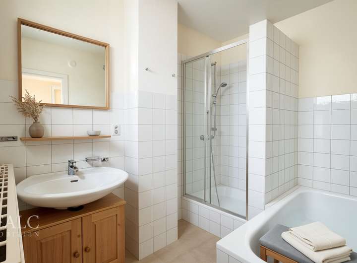 -Der Altbau verfügt über drei gut geschnittene Zimmer, eine Küche, ein Badezimmer sowie ein separates Gäste-WC. Ergänzt wird dieser Bereich durch einen Keller mit direktem Zugang zum Garten. Im Obergeschoss befinden sich zwei Schlafzimmer sowie ein ausbaufähiger Dachboden, der weiteres Potenzial für individuellen Wohnraum bietet.