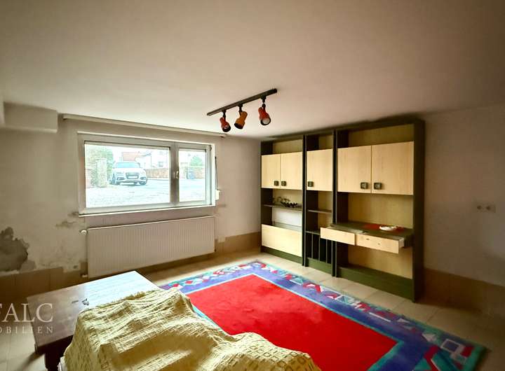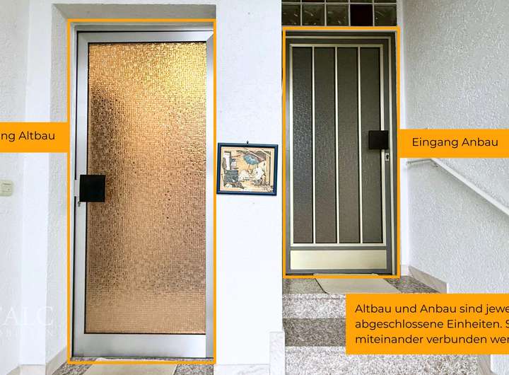 -Der Anbau erweitert das Raumangebot um drei zusätzliche Zimmer, eine Terrasse sowie ein Untergeschoss mit großem Entwicklungsspielraum. Dank vorhandener Fenster ist dieser Bereich angenehm belichtet und vielseitig nutzbar. Ein separater Straßeneingang sorgt für zusätzliche Privatsphäre und eröffnet interessante Nutzungsmöglichkeiten – beispielsweise für Wohnen und Arbeiten unter einem Dach.