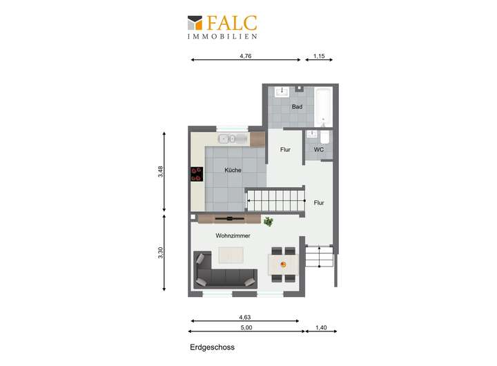 -3 Zimmer, verteilt auf Erdgeschoss und Obergeschoss