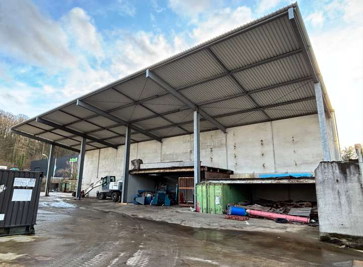 Zusätzlich verfügt das Grundstück über eine offene Halle, die im Jahr 1999 errichtet wurde. Die Halle hat eine Firsthöhe von rund zehn Metern und kann flexibel als Unterstellfläche oder Lagerfläche genutzt werden.