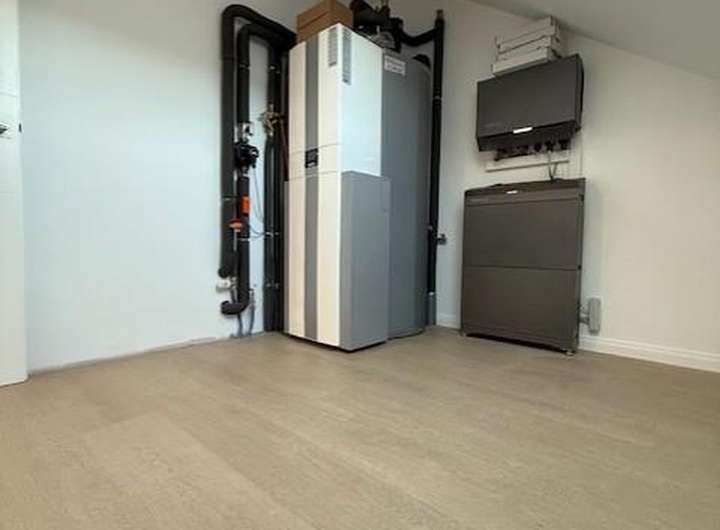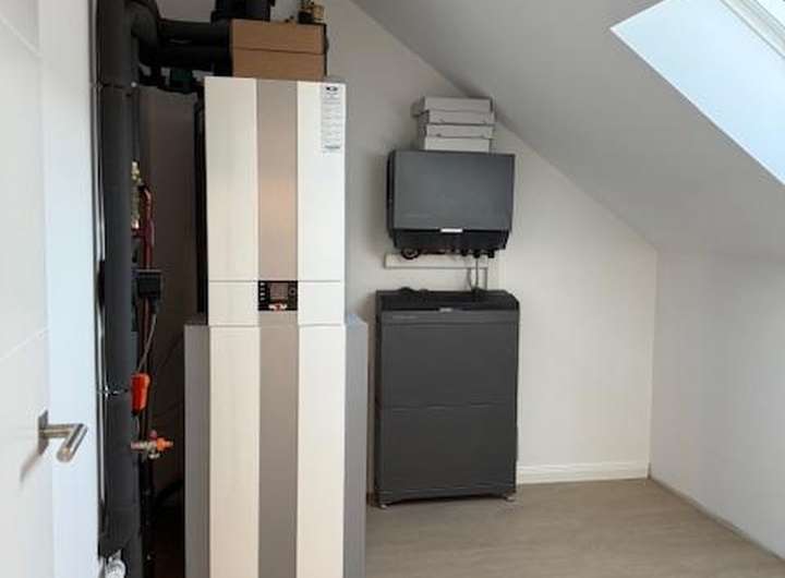 Die Beheizung des Hauses erfolgt ausschließlich über Strom: Eine Luftwärmepumpe in Kombination mit einer 10 kWp-Photovoltaikanlage und einem 10 kWh-Stromspeicher deckt den größten Teil Ihres Heiz- und Strombedarf energieeffizient und umweltfreundlich ab.