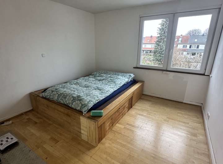 Das Dachgeschoß ist ausgebaut (ebenfalls Buchenholz-Laminat) und wurde als Schlafzimmer genutzt. Es hat 2 große und 1 kleines 2-fach-verglaste Velux-Dachfenster mit Verdunklungsrollos.