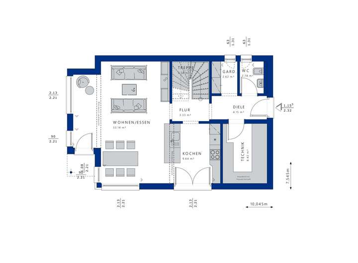 Malerarbeiten, Bodenbeläge, Innentüren und Sanitärobjekte fehlen bewusst, um Ihnen maximale Gestaltungsfreiheit zu lassen. Diese Gewerke können auf Wunsch selbstverständlich ergänzt werden.