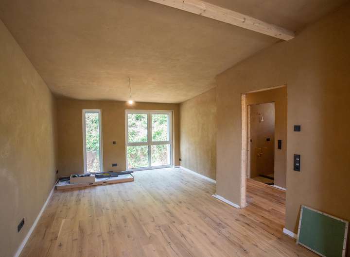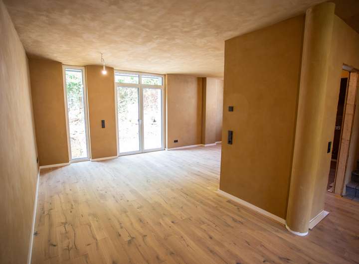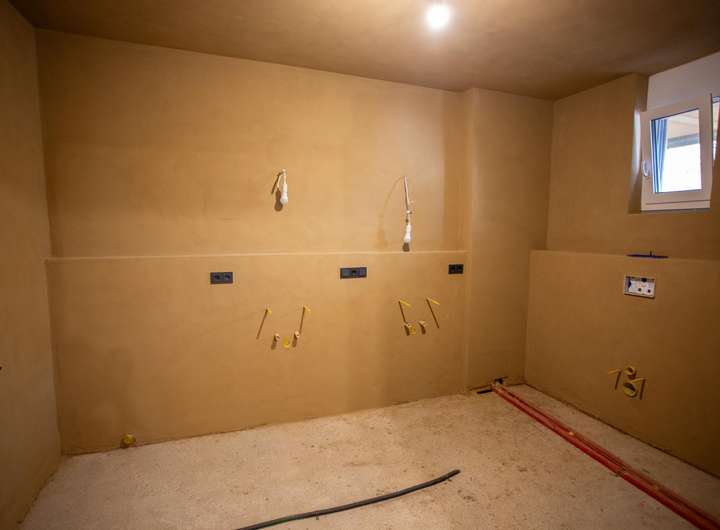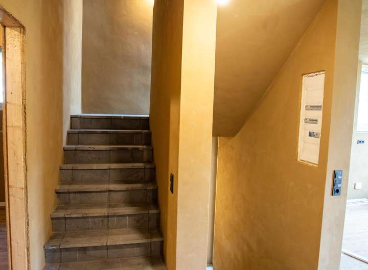 Die oberen Etagen werden mittels Wandheizung beheizt und der Lehmputz sorgt für ein perfektes Wohnklima!