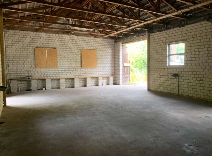 Aktuell ist es mit einem ca. 136 m² großen, unterkellerten zweigeschossigen Wohnhaus aus dem Jahr 1910 bebaut. An dieses Gebäude grenzen kleine Gebäude aus den 50er-Jahren. Weiterhin befindet sich eine Mehrzweckhalle aus den 80er Jahren mit einer Größe von 80 m² auf dem Grundstück.